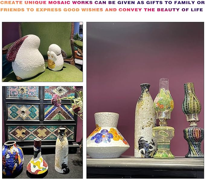 • 【GIFT】Spread joy and beauty with handmade mosaic creations: These mosaic tiles make perfect gifts for mosaic enthusiasts and beginners alike. Create one-of-a-kind mosaic artworks to gift to your friends and family, spreading love and joy through the beauty of art