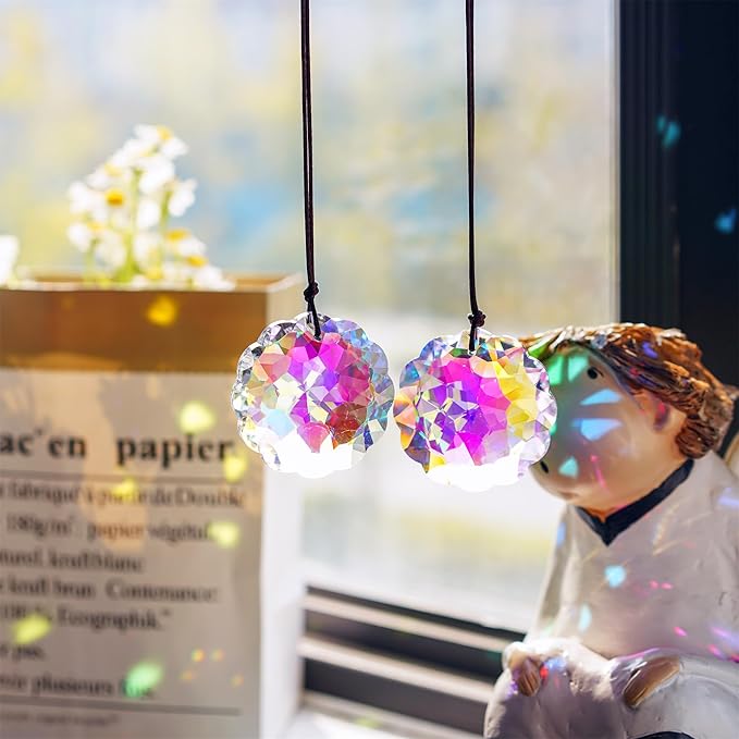 • Material:This Datura Shaped crystal prisms suncatchers pendants are made with K9 crystal.Package includes 2pcs. They will create the most beautiful rainbow when the sunlight hits the pendants