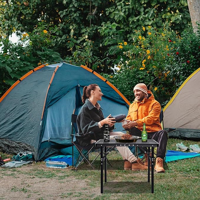 • 2 Height Options, Outdoor/Indoor use - At a height of 9.4 inch, you can use it with a picnic or beach mat or rug as a floor table, and when adjusted to 20.4 inches, you can use it with a picnic or fishing chair. This folding table is very suitable for one person, couple and family to use in most daily occasions and outdoor activities. It can be used as outdoor bbq table, grill stand, picnic table, dining table, beach coffee table, game table, fishing table, rv table, card table and side table