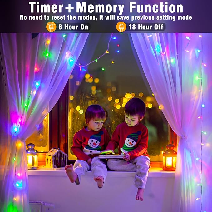 • Waterproof&UL Listed: Christmas string lights come with a safe 29 V low voltage UL certified plug, keep the fairy string lights will stay cool to touch even after prolonged use. Christmas outdoor lights with IP44 waterproof rated, safe to use in rainy and snowy weather and inclement weather.