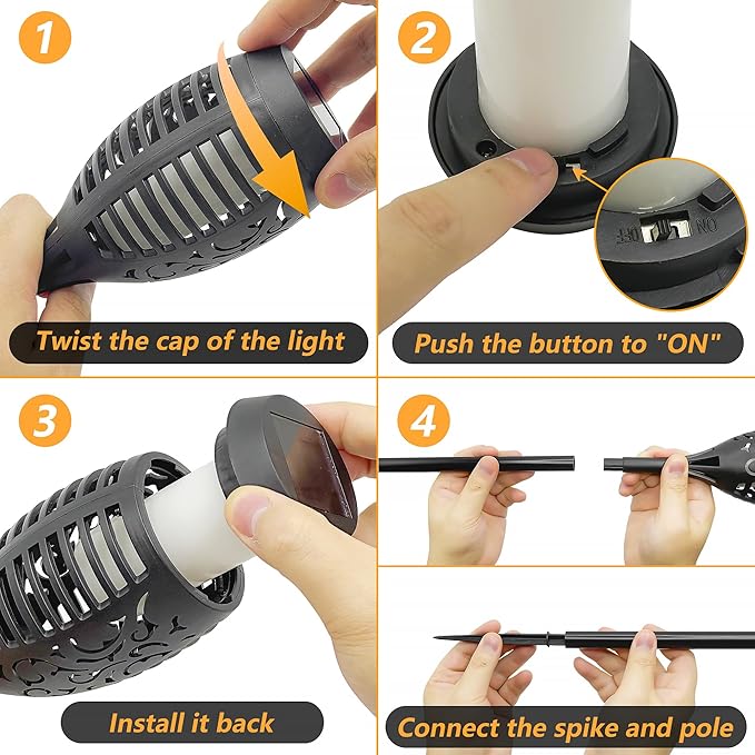 • 🔥【Easy To Install】Solar flame lights outdoor needn't wires and tools, small 20.5 in tall garden lights solar powered are easy to install. Just connect the parts and stake into the ground where there is direct sunshine.