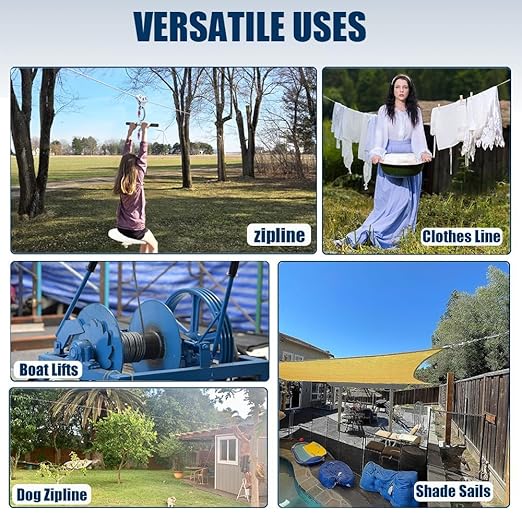 • Flexible Installation and Adjustment: No more sagging cables! Easily fine-tune length and tightness with the included 1/4 (M6) turnbuckles. Trim the rope to any size (use bolt cutters), thread clamps, and twist the tensioner for a rock-solid setup. Adjust on the fly for seasonal changes or shifting loads.