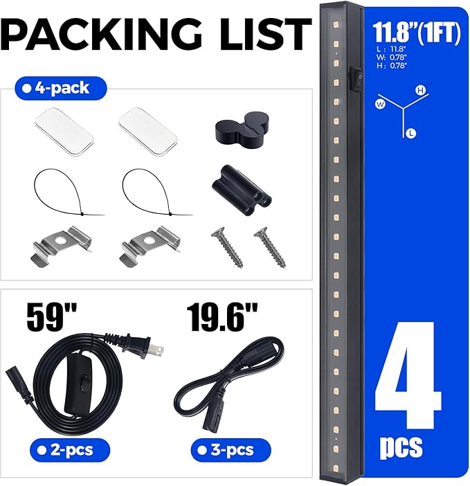 • Unique Exterior Design: This t5 plant light strip 1ft made in a black casing with aluminum instead of white casing. Make it look even better and more integrated into your fine home furnishings. Dark cords instead of white so as to minimize the observance of cords running through your plant displays
