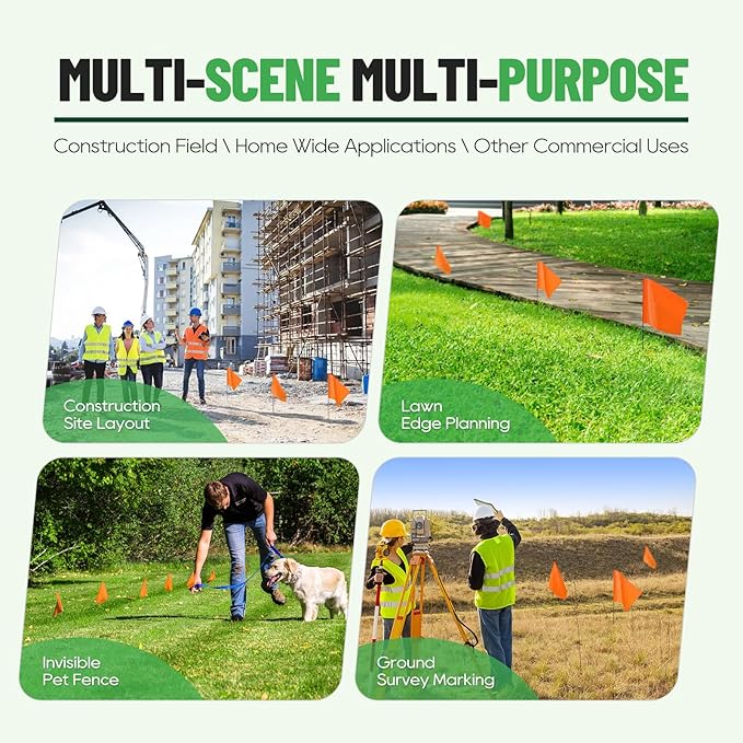 • ⛳【OTHER COMMERCIAL USES】- Maintain workplace safety during construction! Use them to clearly demarcate an area, point out the location of underground cables or pipes. Marking flags are essential during a ground survey for drawing.
