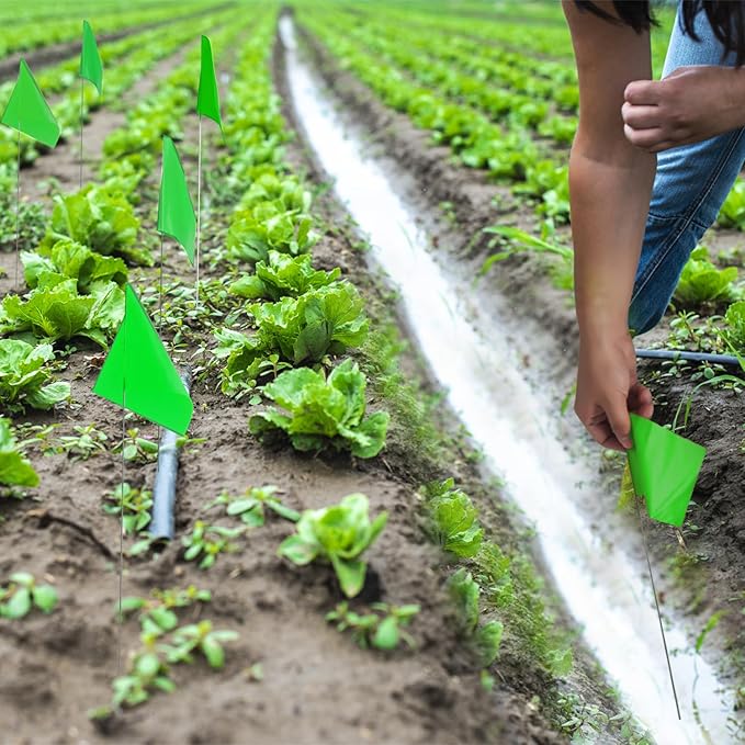 Zozen 50Pack Green Marking Flags, Writable/15x4x5 Inch, Yard Flags for Lawn & Irrigation & Landscape & Sprinkler & Survey & Dog Training.