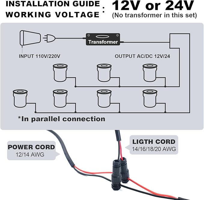 • ★AC/DC Adaptive: 12 to 24V input working voltage, compatible with most low voltage landscape lighting,Just wire it with voltage transformer, and it will work for you. But also please noticed that the voltage transformer is not included.