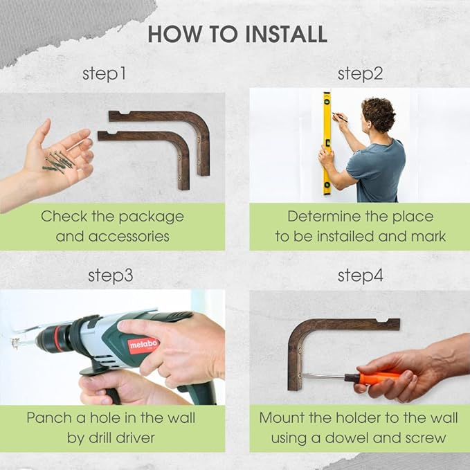 • EASY INSTALLATION: With the included hardware and easy straightforward instructions, mounting our plant hanging bracket for wall is a breeze. Our hooks for plants comes come with 4 screws, 4 dowels and 4 self-adhesive screw covers for installation.