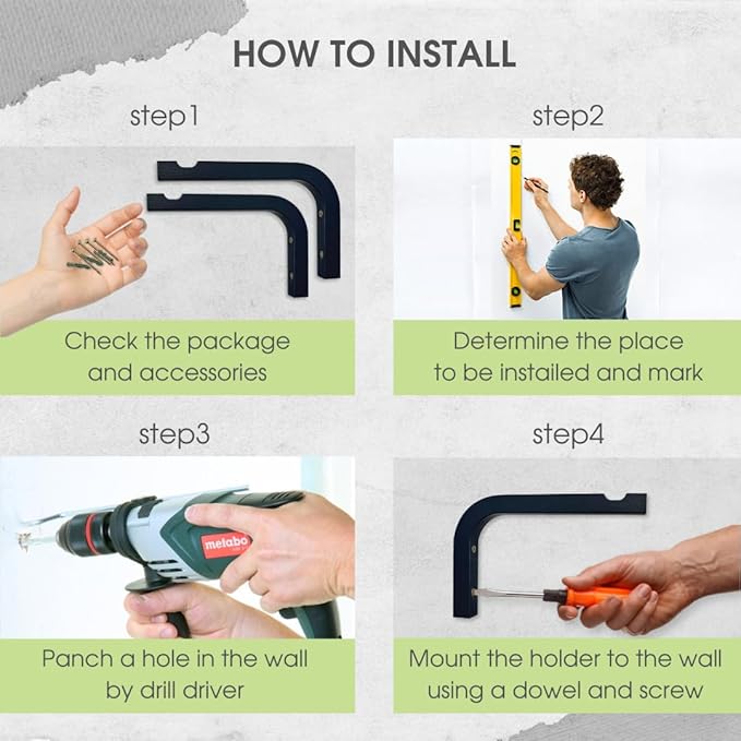 • EASY INSTALLATION: With the included hardware and easy straightforward instructions, mounting our plant hanging bracket for wall is a breeze. Our hooks for plants comes come with 4 screws, 4 dowels and 4 self-adhesive screw covers for installation.