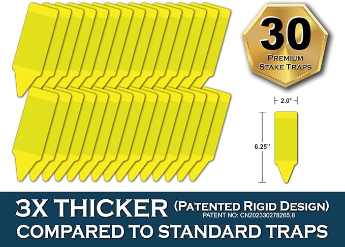• ✅ QUALITY DESIGN: While fun shapes may appear charming for gardening accessories, they can potentially disturb your plants or prove challenging to position. Our simple, garden-themed patented stake shape enables easy insertion into any potted plant or hassle-free hanging on trees. Furthermore, our dual-sided glue stake boasts three times the thickness of other standard traps.