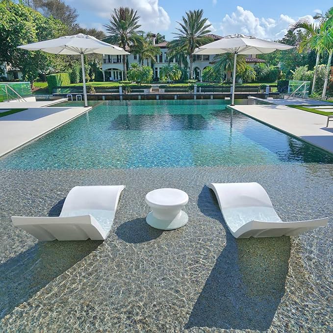 • ALL WEATHER DURABILITY - Made with UV20 resin, Ledge in pool lounge chaises and tables are built to withstand sun, rain, wind and every other seasonal environment for 10+ years. Stackable, but not necessary to store as the seasons change. Keep in your pool for that outdoor oasis feel, all year round.