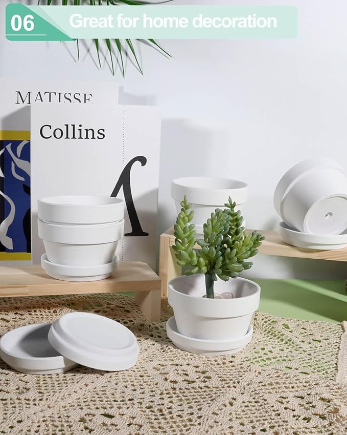 • Saucer&Drainage: Package included 6pcs terra cotta saucer to prevent dust and water from falling out of the drain, to keep the interior clean and to increase the beauty of the room the drainage outlet can prevent water accumulation and extend the life of the plant.