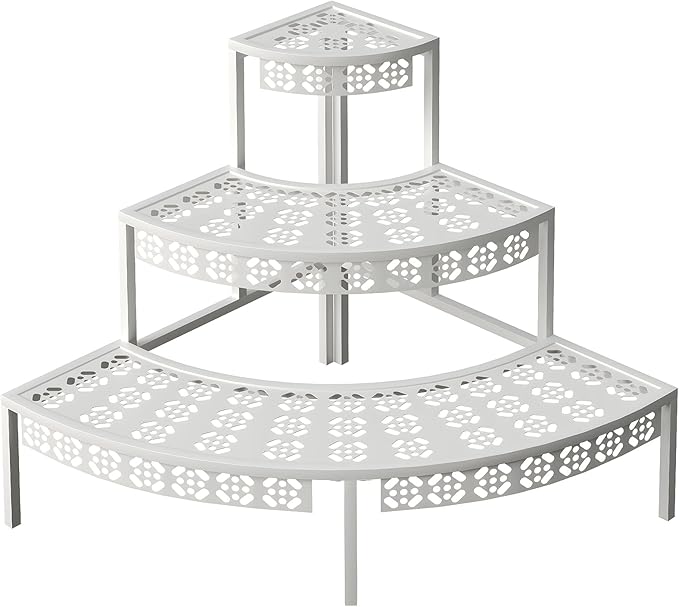 aboxoo 3 Tier Plant Stand Semi-Circular Flower Pot Organizer Rack Quarter Round Plant Display Holder Outdoor Storage Shelves Metal Corner Shelf Planter Shelving Ladder Plant Stand for Indoor