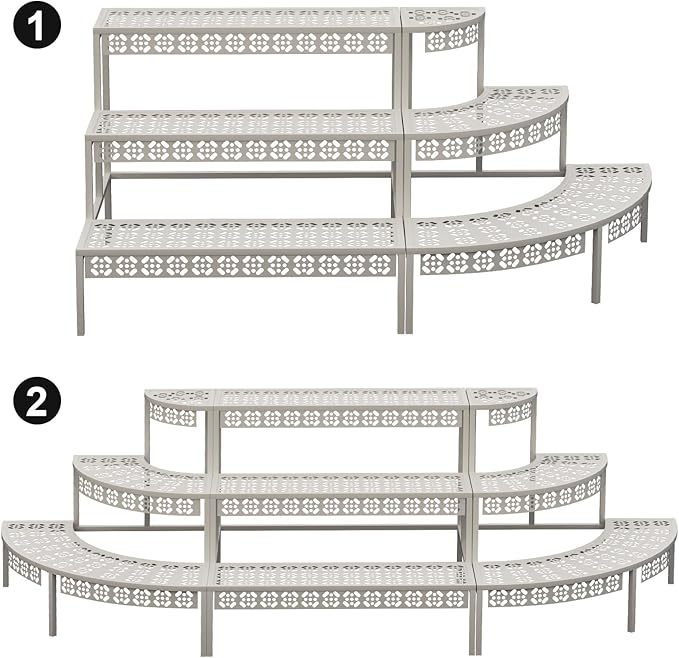 • 【Sturdy and Durable Metal Construction】Durable metal with a rustproof finish, this flower pot holder shelf does not rust and does well outdoor. This metal flower pot stand with a curled pattern design is sturdy and durable, suitable for medium to large-sized plants. Each layer can accommodate approximately 50 pounds of potted plants.