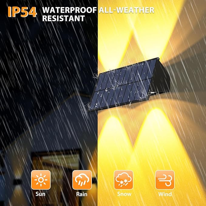• [IP54 Waterproof &Widely Application] :No need to worry about the weather. The structure of the light is designed to be waterproof.Designed with weather-resistant materials and a waterproof rating, this fence solar light can withstand a variety of outdoor conditions, such as rain, snow, and extreme temperatures. This is a solar light outdoor waterproof, suitable for wooden fences, decks, porches, patios, garage doors, gardens, villas, steps, fences, passages, stairs, etc.