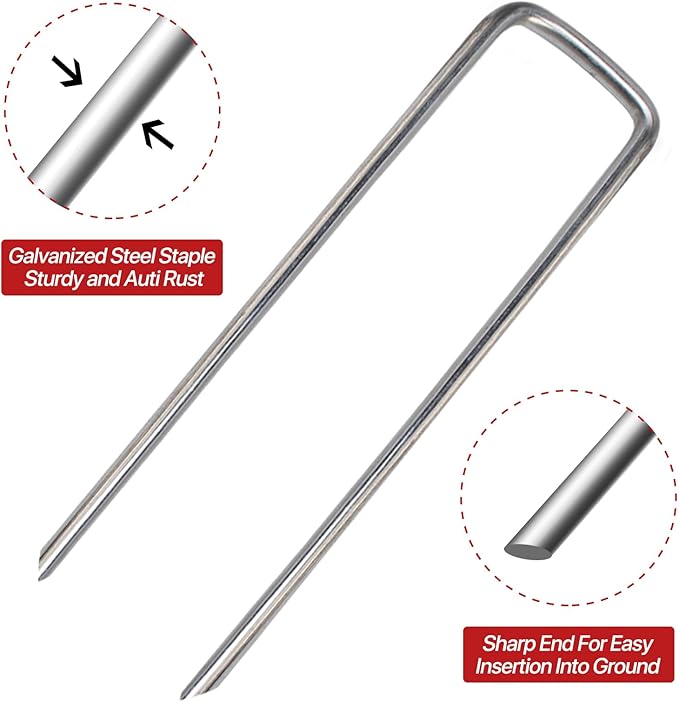 • 【Numerous uses】Landscape pins can secure garden fabic, ground cover, animal fence, weeb barrier fabic, electric wires, raising bed, vegetable bulb, ect.