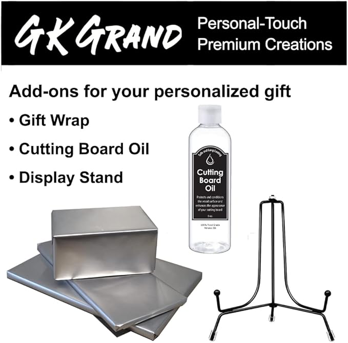 • BEAUTIFUL MATCHING GIFT ADD-ONS: Enjoy a great shopping experience as we offer matching gifts with the exact engraved design as your walnut board, pick and choose from some of the following items, Charcuterie board, Wine Tumblers, Coasters, we also offer display stand meant for this board, Gift Wrapping, Mineral Oil to keep this stunning board vibrant for years to come. Send your gift with confidence directly to the recipient knowing we have everything covered with an excellent gift presentation