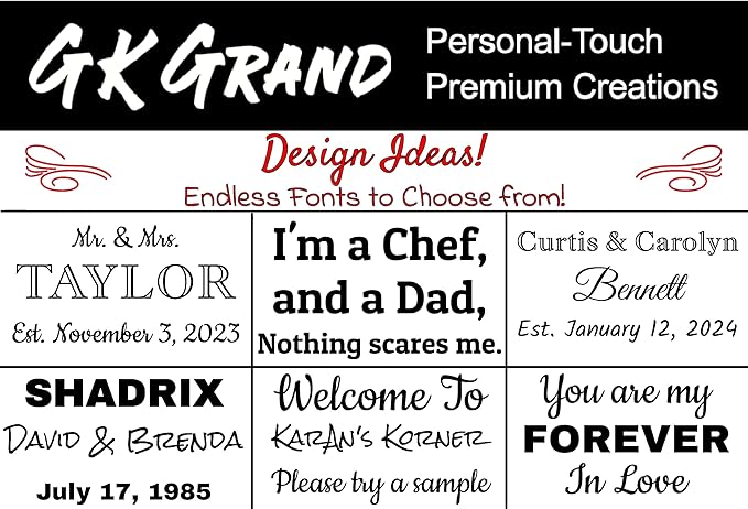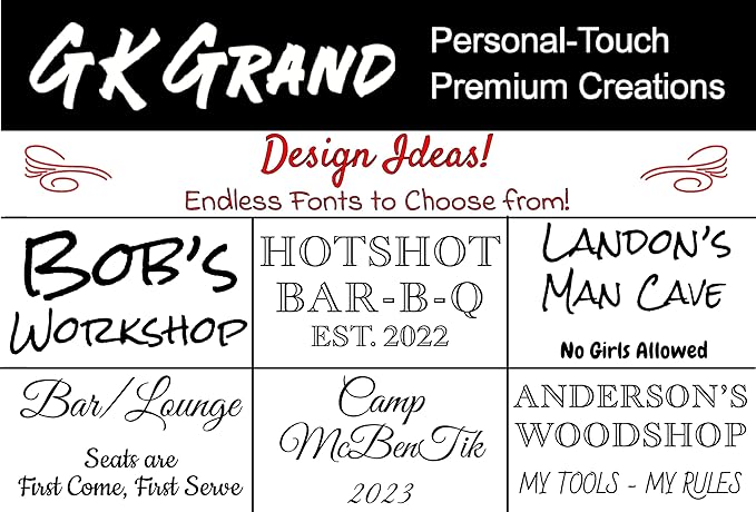 • WHY US - ABOUT US: GK Grand Personal-Touch Premium Creations has been selling on amazon for 7 years and has sold well over 200,000 products, we have a lifetime customer satisfaction rating of 99%. We are a family-owned business in St. Augustine Florida. We take great pride in all the products we make. PLEASE CONTACT US IF YOU WANT A SPECIAL DESIGN or NEED ANY HELP.