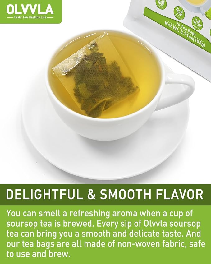 • DELIGHTFUL FLOVOR: You can smell a refreshing aroma when a cup of soursop tea is brewed. Every sip of Olvvla soursop tea can bring you a smooth and delicate taste. Besides that, adding honey or lemon is also a good way to enhance the flavor;