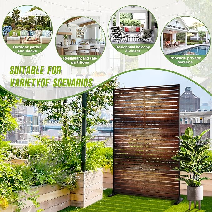 • 【Unmatched Endurance】Fency metal privacy screens exhibit exceptional durability, standing strong against scratches, water, sunlight. Enjoy the peace of mind that comes with no concerns about image fading or damage, offering enduring, premium decorative solutions.