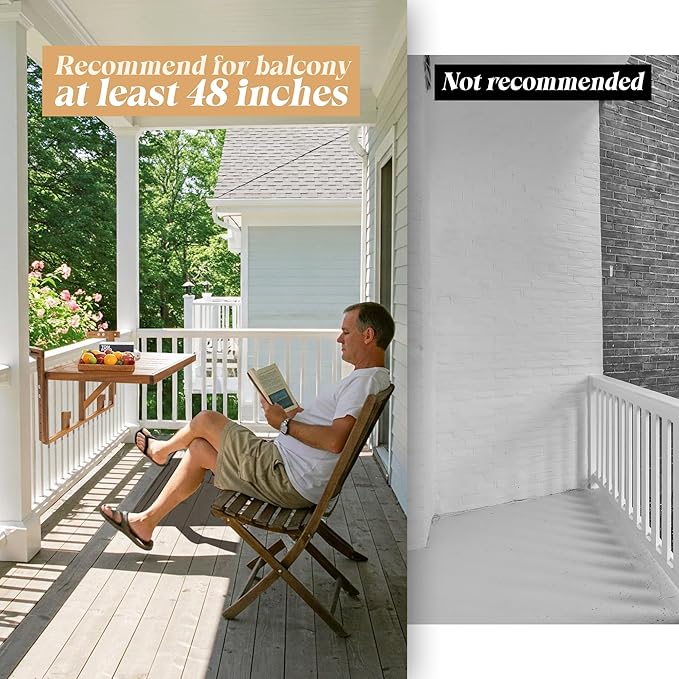 • 【EASY SETUP BALCONY RAILING TABLE】It takes only a few minutes to install this hanging balcony table with our detailed manual; The balcony railing deck bar is kept firmly in place thanks to the additional wood padding