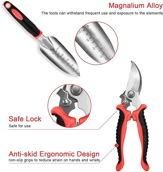• 3 YEARS AFTER-SALE SERVICE & 𝐆𝐑𝐄𝐀𝐓 π†π€π‘πƒπ„ππˆππ† π†πˆπ…π“π’: Our complete garden tool set, packaged in a beautiful gift box, is the perfect gift for gardening enthusiasts. Suitable for both men and women, it's ideal for occasions such as Mother's Day, Father's Day, Christmas, anniversaries, and birthdays.3 YEARS AFTER-SALE SERVICE: We offer every customer with 3 years after sale service. Any questions for the garden sets,you can contact us for fast 12 hours reply!