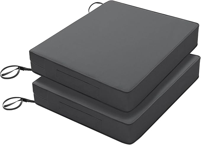 Favoyard Patio Chair Cushions 18.5 x 16 x 3 Inch Waterproof Outdoor Seat Cushions for Patio Furniture 3-Year Color Fastness Garden Sofa Couch Pads with Handle & Adjustable Straps Set of 2, Dark Grey