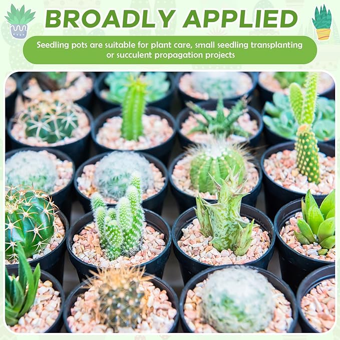 • Broadly Applied: seedling pots are suitable for plant care, small seedling transplanting or succulent propagation projects; The plastic plant nursery pots can be placed in your balcony, garden, yard, porch, patio, office