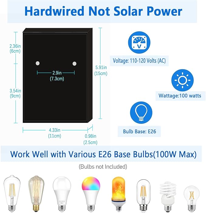 • 【Friendly Reminder】This outdoor wall lantern is powered by a 110V wired power source, not solar energy. Solar lights are easily affected by weather conditions, leading to unstable performance and potential battery damage. By using a wired power source, we ensure that the light operates with stability and durability