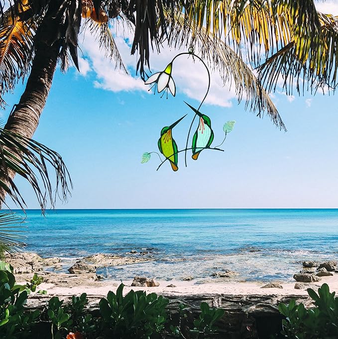 • The hummingbird stained glass window hangings and wall hanging could be the perfect decor for your home and garden. Wherever the place is a bedroom, living room or bathroom window, balcony, garden or courtyard.