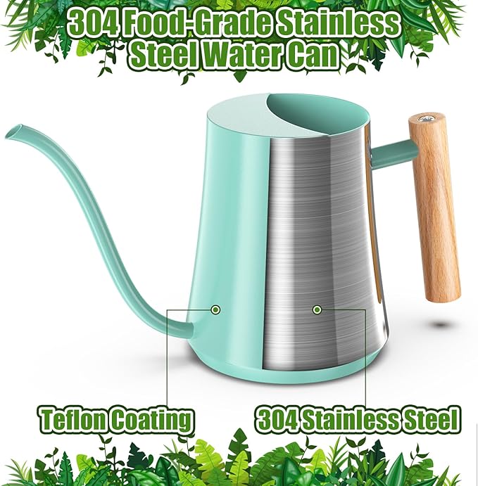 • 【COMFORTABLE WOODEN HANDLE】Our indoor watering can has a round comfortable wooden handle. It is easy to grasp and won't hurt your hands. Also, our stainless steel watering can has a built-in open-top design, which is convenient for refilling water.an exquisite and light body design, our watering pot serves as a decoration.