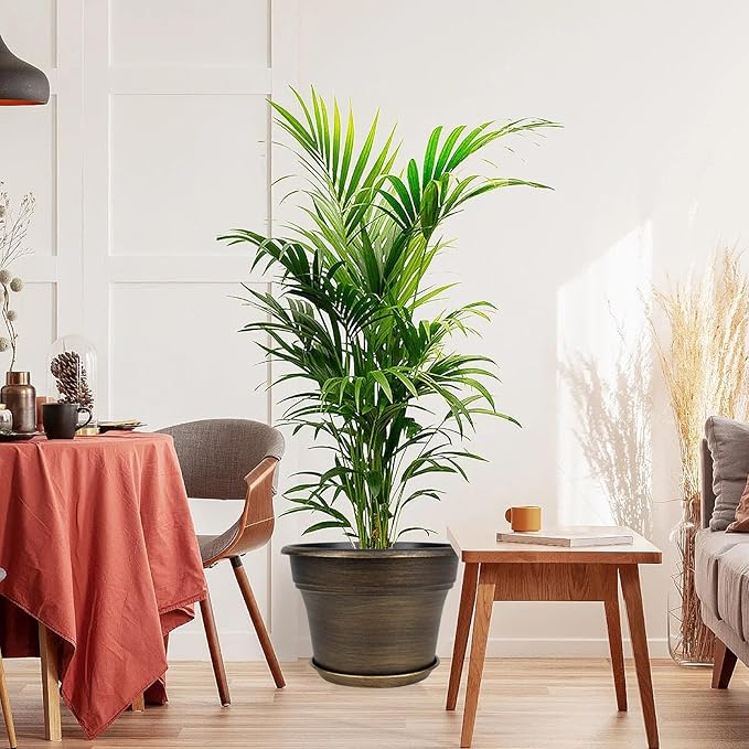 • 【TRADITIONAL DESIGN】Plastic planters for indoor plants with trays are designed in in dark gold colors & a classic look, which allow this pot to fit into any indoor & outdoor setting. With these golded flower pots, it could adds fresh, decorative flair to your home. Decorate your windowsill, desktop, shelf, bedroom, living room, kitchen, garden, office with our 16 inch large plastic plant pot.