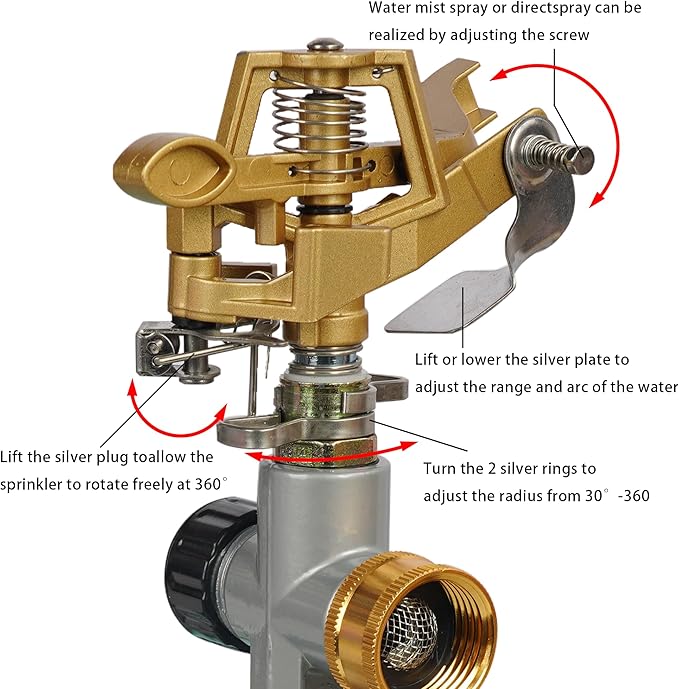 • High Quality: Constructed from high-quality zinc alloy and stainless steel, the garden sprinkler head, along with its sprinkler crafted from high-quality zinc alloy, is robust, durable, and waterproof, offering rust resistance for extended use.