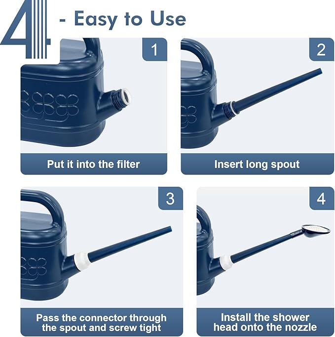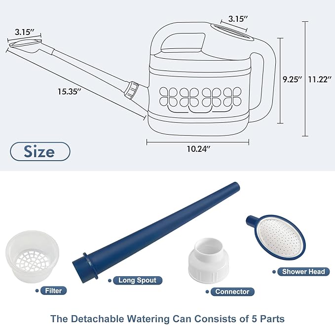 • [PRECISE WATERING, WATERING FLOWERS WITHOUT WORRY]-Plant watering can has a removable long spout, easy to carry and store, when installing, pass the connector through the spout and screw tight, seals well with no leak. Long spout watering can easy to reach distant plants, watering easily without bending over or tilting it too much, it easy to control the overall water flow, directing water exactly where it is needed, allowing every part of the plant to fully absorb the water.