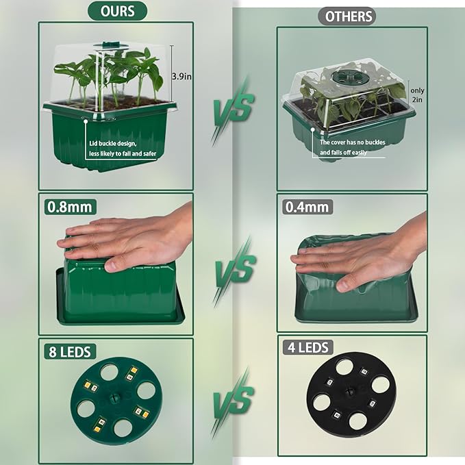 • EFFICIENT GROWING & WIDELY APPLIED: Our seed starter kit is the ideal size for growing small seeds from seedlings of various plants. Suitable for a wide range of plants. It can artificially control the light quality, light intensity, photoperiod; humidity and temperature, so that the plants are always in the best growing environment, effectively shorten the growing time, and improve crop yield and quality. Ideal gift for novice gardeners.