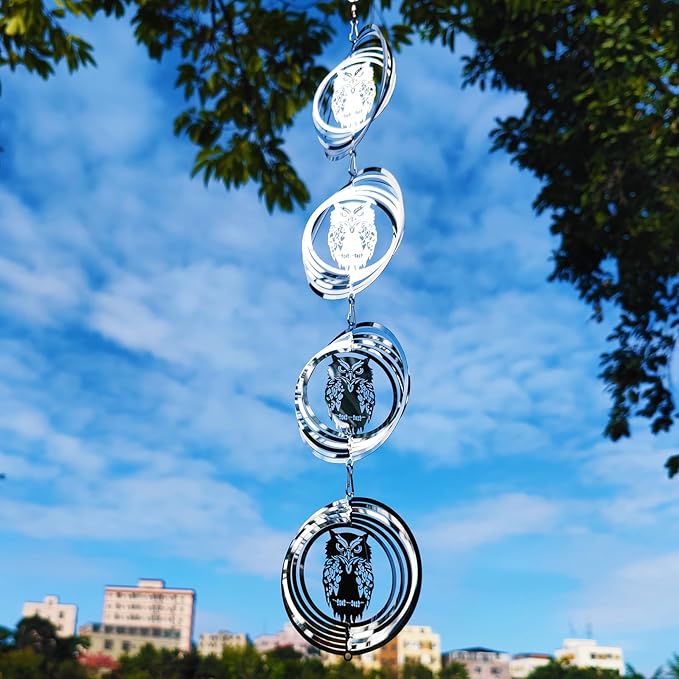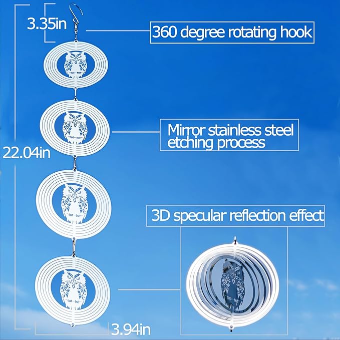 • Best Bird Scarer to Keep Birds Off: Our owl bird repellent wind spinner device humanely scares them away by reflecting visual light.Easily mount these bird blinder repellent wind spinners on your area with direct sunlight and breeze for effective use.They are so beautiful as they spin in the wind and reflect sunlight.