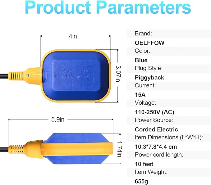 • 【Wide Range of Applications】: Not limited to sewage pumps, it can also be used for water tanks, septic tank pumps, and various other scenarios. An ideal choice for water level control in both home and industrial environments.