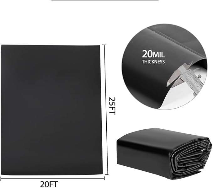Pond Liners 20 x 25 Feet, Easy Cutting LDPE Pond Liner 20 Mil, High Preformed Koi Pond Liner for Ponds, Streams, Fountains and Garden Waterfall