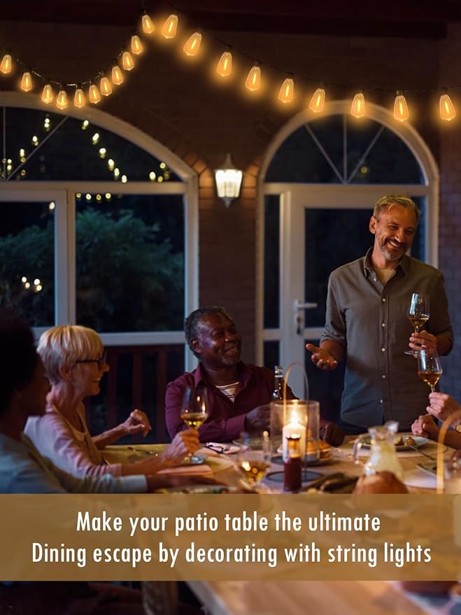 • 【Energy saving outdoor lights for patio】- Our ST38 edison LED bulb have a classic,timeless look that fits in with all styles of outdoor backyard space and events. edison string lights are a cost-effective alternative to add and lighting to your outdoor patio, Over a 30,000-hour longer lifespan, our energy-saving string lights will not only provide brighter lighting but also cut down 90% of your electricity bills compared with incandescent ones.