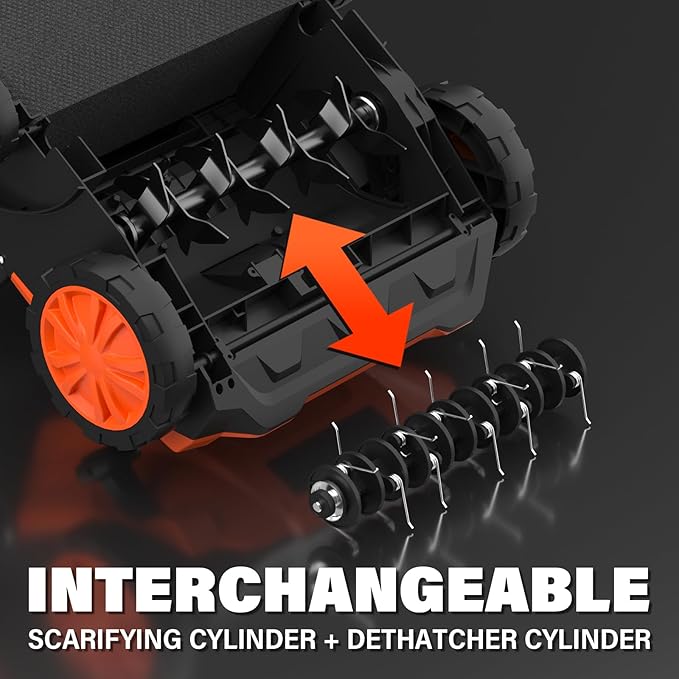 • 2-in-1 MULTIPURPOSE: The lawn dethatcher comes with a dethatching blade to remove thick layers of dead plants of your lawn, and a scarifying blade to cut grass roots for thicker and healthier lawn growth.