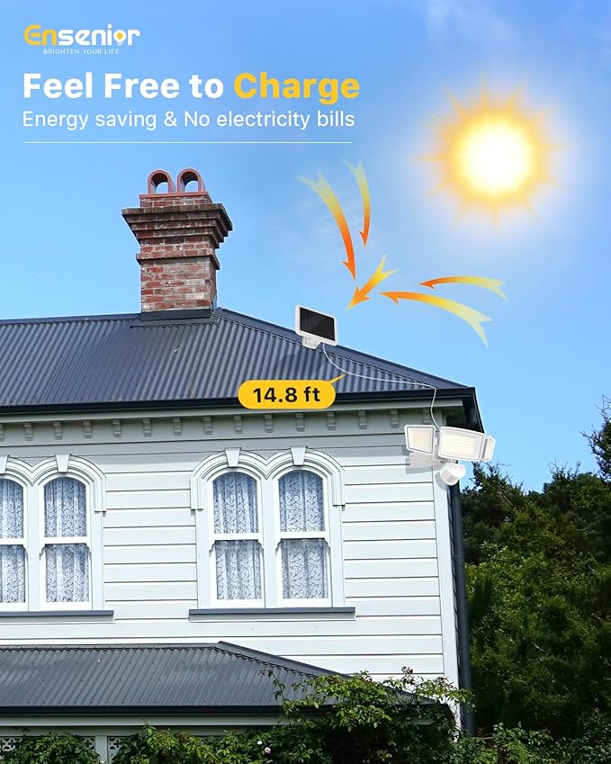 • 💡 [Wide Angle & Motion Sensor] Ensenior security flood light has adjustable 3 heads and a large 270° beam angle, illuminating a wider area with right-angle installation. The 180° sensor detects movement up to 75FT, providing extra security for your home.