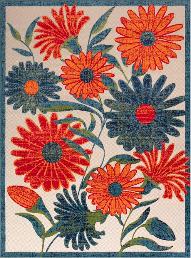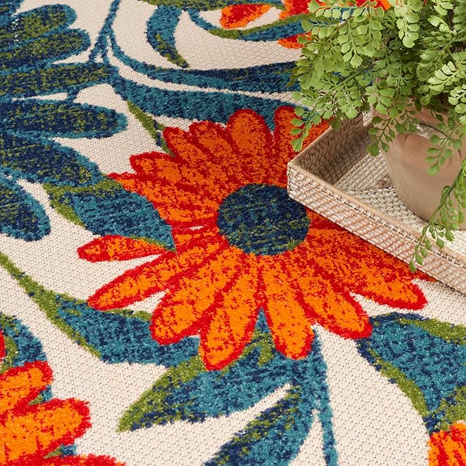 • EYE-CATCHING PATTERN: This floral outdoor rug is flatwoven with a subtly raised cut pile for a distinctive look and soft texture.
