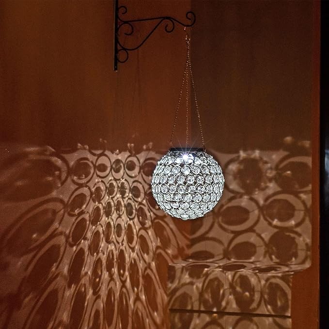 • 【Hand-made Lantern】Dia 7.5 inch solar lantern is designed with hollowed-out pattern, it beams attractive and beautiful light throughout the orb in the night. During the day, the solar lantern sparkles in the sunlight by these polygonal acrylic pieces. Metal frame makes this decorative lantern more sturdy.