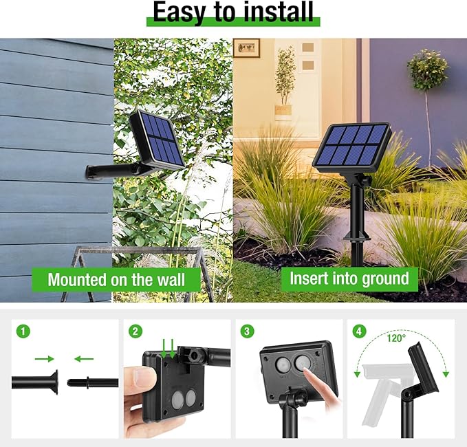 • 【Waterproof Design for All Weather】Light string and solar panel are IP65 waterproof to withstand any weather, either rain, sun, or snow. Safe for outdoor use, Don't worry about short circuits or bad weather damage (can't soak in water)