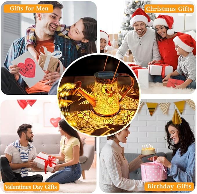 • Great Gift Choice: This unique vintage solar watering can is not only a beautiful decoration for garden, patio and outdoor, but also can be used as an Eid gifts, Mother's Day gifts, Father's Day gifts, Birthday gifts, Valentine's Day gifts, Christmas gifts, gardener's gifts, housewarming gifts for women, men, moms, grandmothers, fathers, wife, daughters, sisters, aunts, girlfriends, boyfriends, or gardening enthusiasts