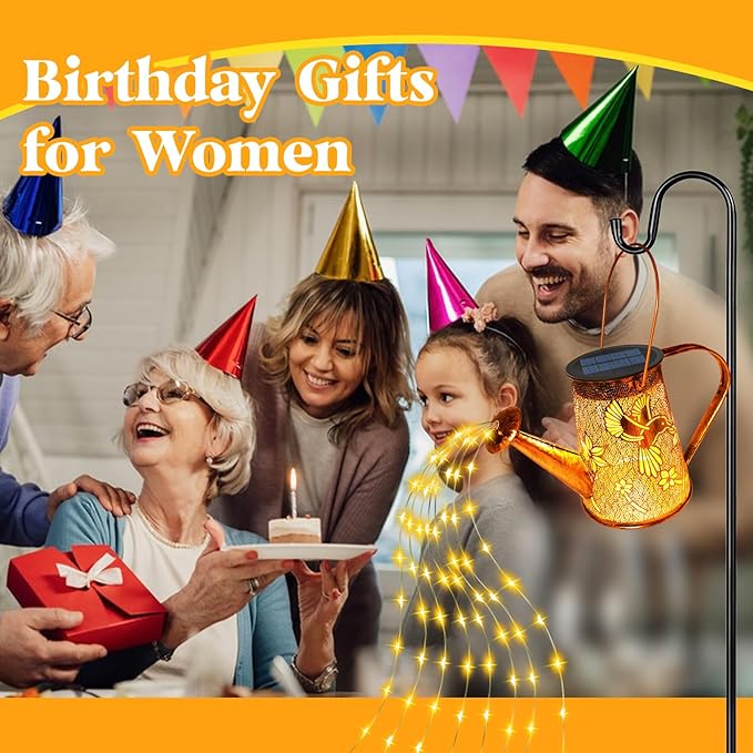 Solar Watering Can Lights, Hummingbird Gifts for Women Mom Grandma Birthday, Waterproof Outdoor Garden Decor Large Hanging Solar Lanterns Garden Lights for Patio Porch Yard Flowerbed Pathway