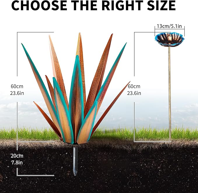 • ❤ [Simple to Install] - The tequila patio decor art sculptures can be placed on the ground directly, easy to install and no need any tools, just put the metal flowers decor anywhere you want.