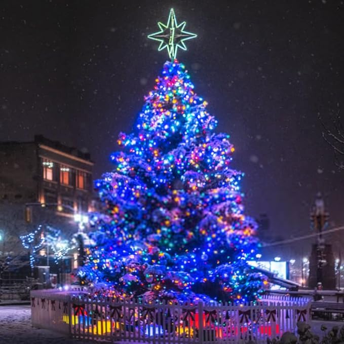 • [Solar Powered & Auto On/Off]: This string lights for outside is solar powered and waterproof, no electricity cost. Larger Christmas solar panel with quick charging technology, bring you higher solar energy conversion, it can work up to 10-12 hours after being fully charged (8 hours). Just place the battery panel in sunny area, it will automatically charge at daytime and light up at night.