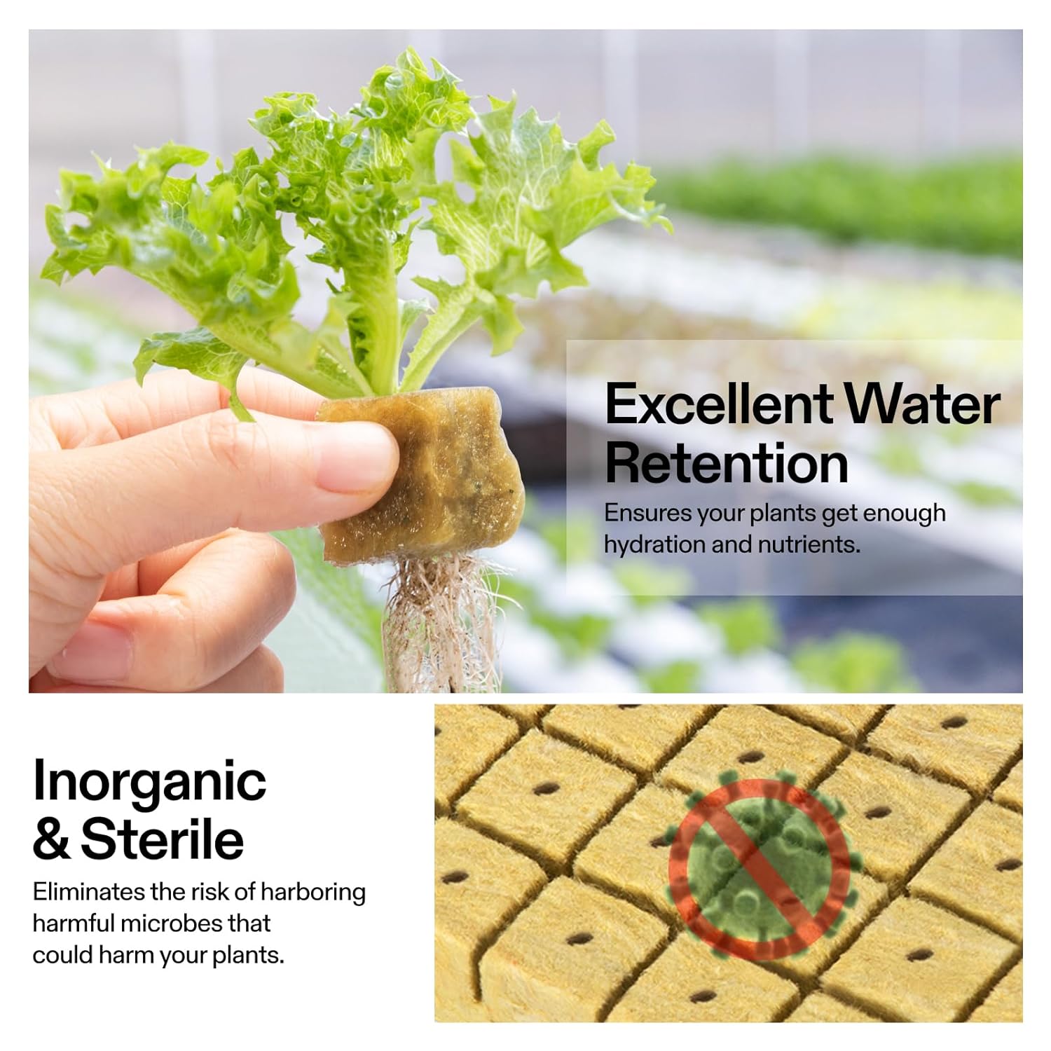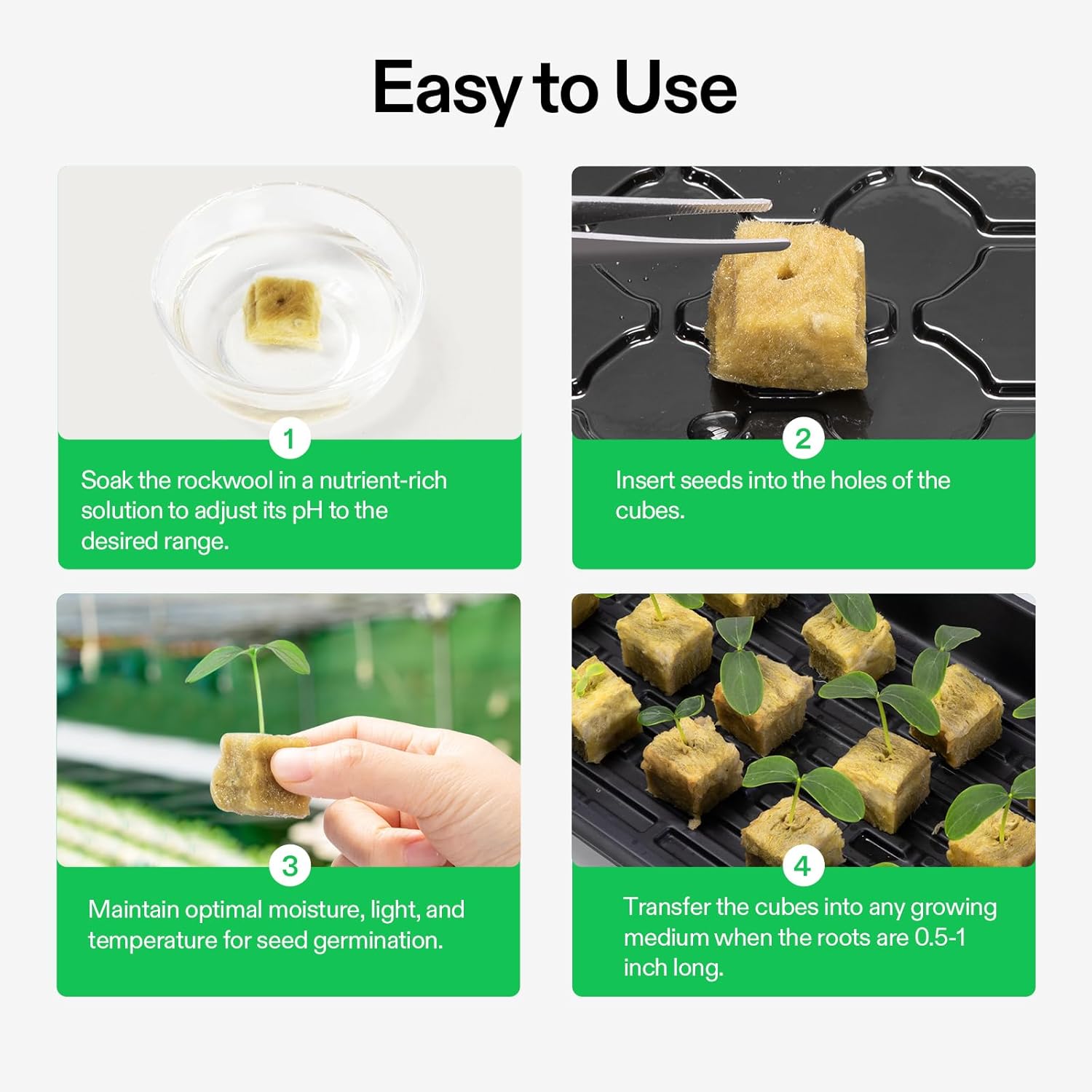 • Easy to Use & Observe: These light and fluffy rockwool cubes are easy to cut to any size; Each cube has a hole for your seeds or cuttings, and you can transfer the cubes to any medium when the roots develop; It is also easier to observe the growth on one sheet