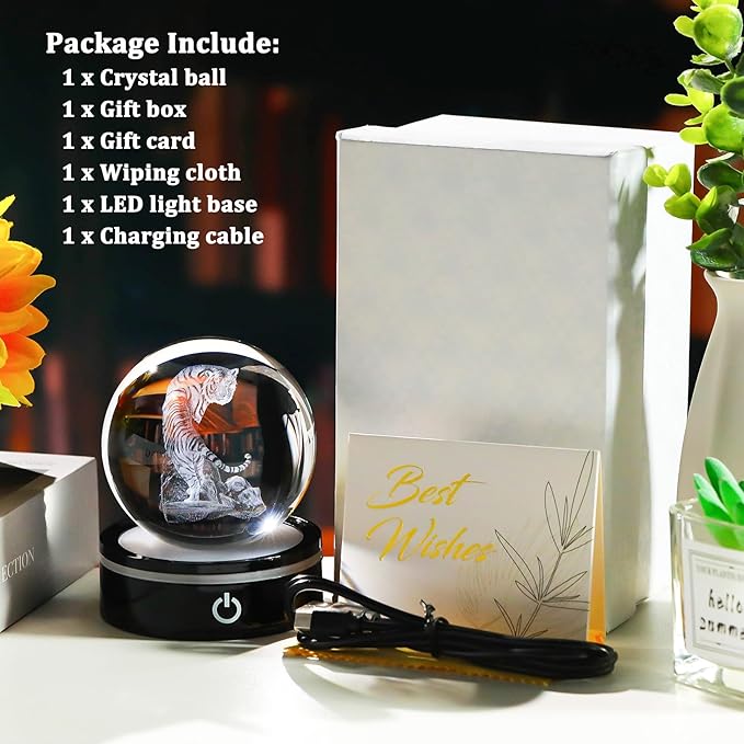 • 3D Tiger Crystal Ball: The Tiger figurine is made of high-quality k9 crystal making the crystal ball more transparent and glossier, 3d laser engraving technology design creates exquisite image inside. Even after a lifetime of use, crystals never lose their original shine