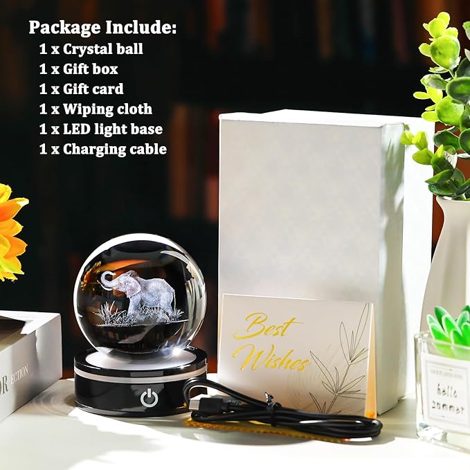• 3D Elephant Crystal Ball: The elephant figurine is made of high-quality k9 crystal making the crystal ball more transparent and glossier, 3d laser engraving technology design creates exquisite elephant image inside. Even after a lifetime of use, crystals never lose their original shine